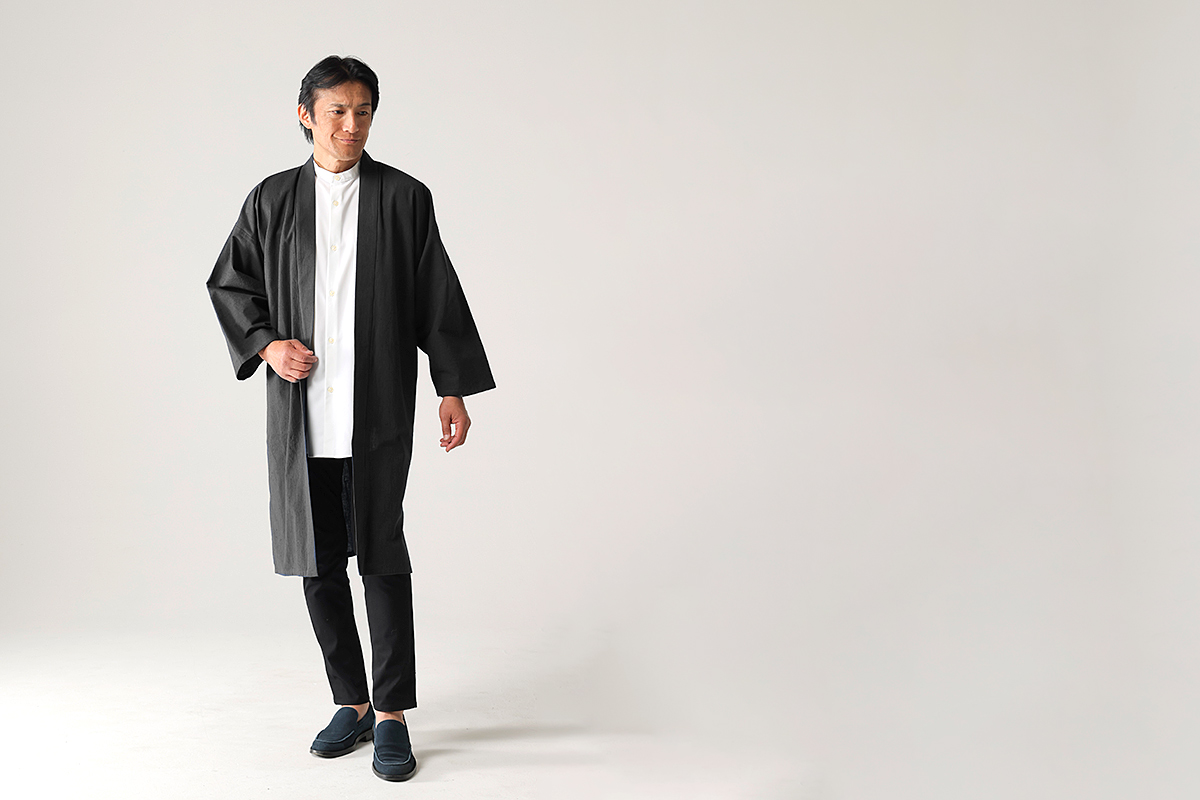 通年むけ人気の「たてスラブ」生地の ロング羽織が登場。