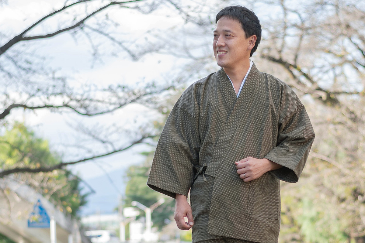 昔ながらの「ドビー織機」による綿100%の刺子織生地は、心が解れる優しい着心地。
