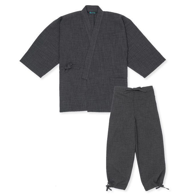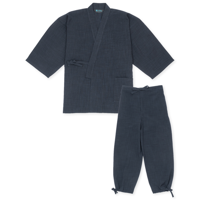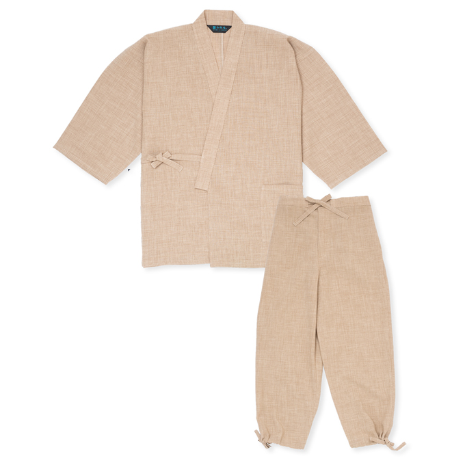 麻の手織りのようなザックリとした風合いを、永く美しく楽しめる作務衣です。