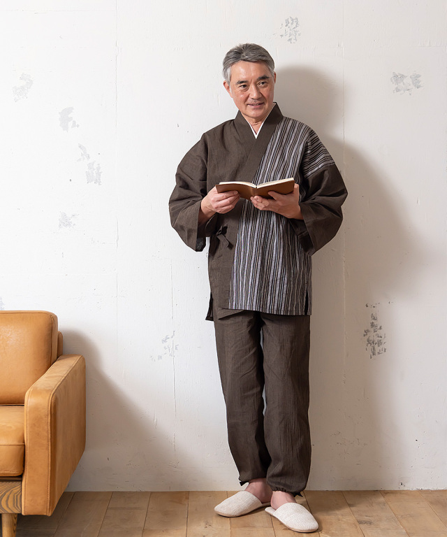 カラーは濃紺・中紺・黒・グレー・茶の5色を揃えました。春夏の洒落たくつろぎ着をお探しの方に最適な作務衣です。
