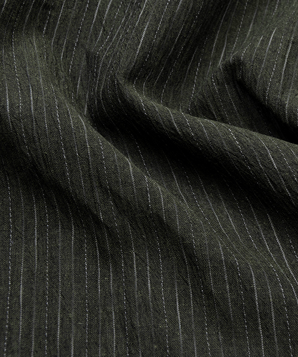 生地は麻の織物の産地として名高い「近江ちぢみ」。 吸汗性に優れた綿と清涼感のある麻の混紡素材で、抜群の着心地を実現しました。 伝統技法により作られる「しぼ」が、経絣の柄と引き立て合い小粋な雰囲気を醸し出します。