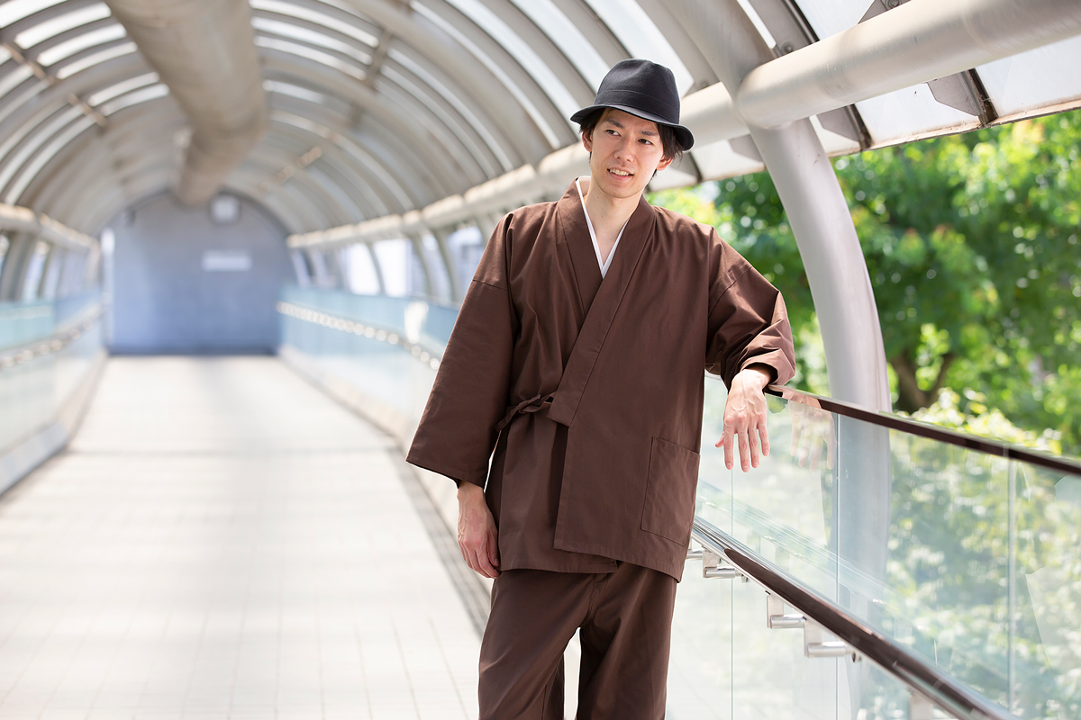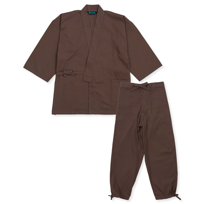 深い色合いが特別感を醸し出すコーヒー染の作務衣です。