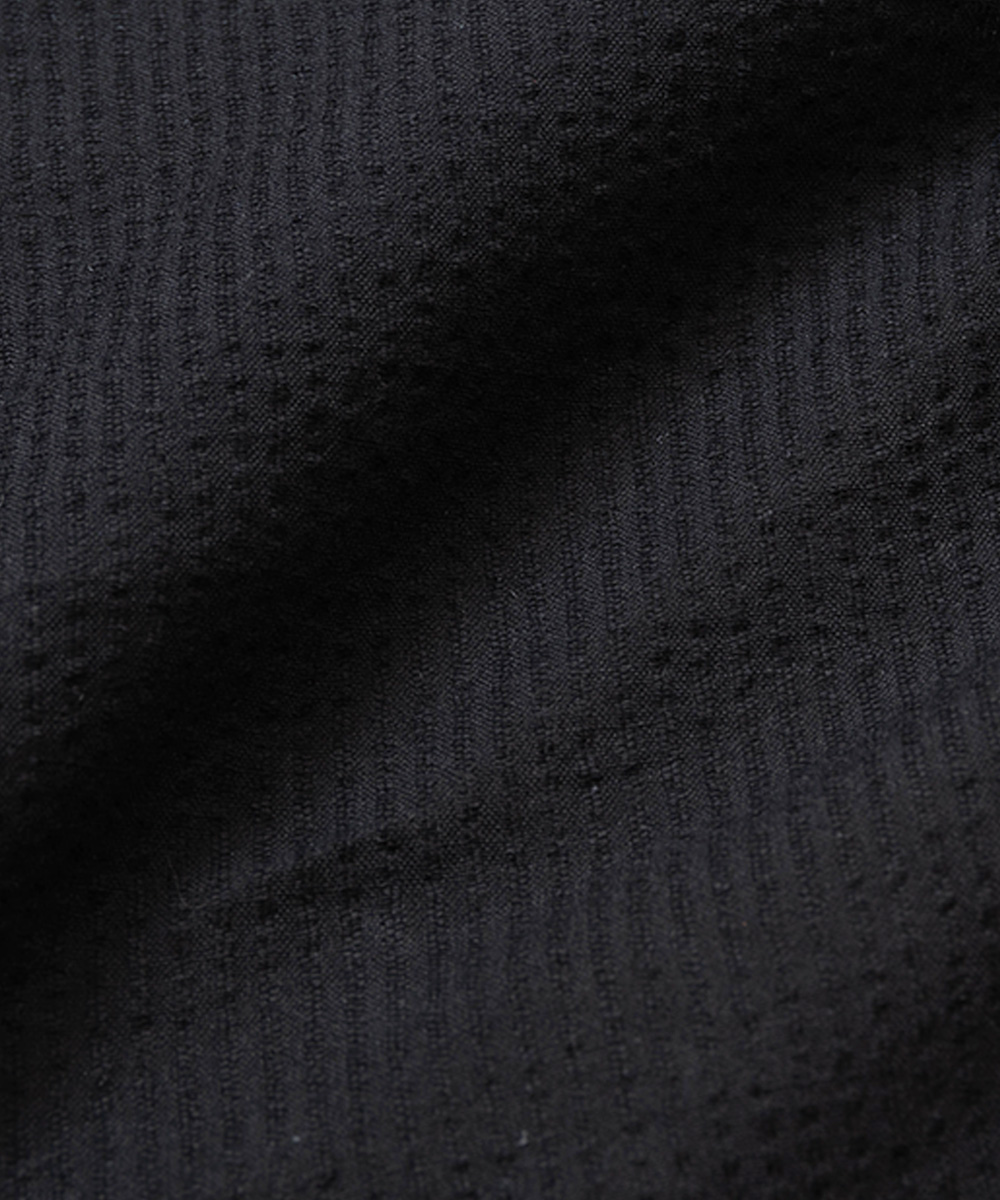 2種類の異なる組織(平織・引き揃え)の伸縮性の違いで凹凸のある「しぼ」を出しています。 しじら織の特徴であるこの凹凸は、肌に触れる面積を少なくし、 汗をかいても貼りつくことはありません。 肌と羽織との隙間には風の通り道ができ、とても涼しく感じられます。