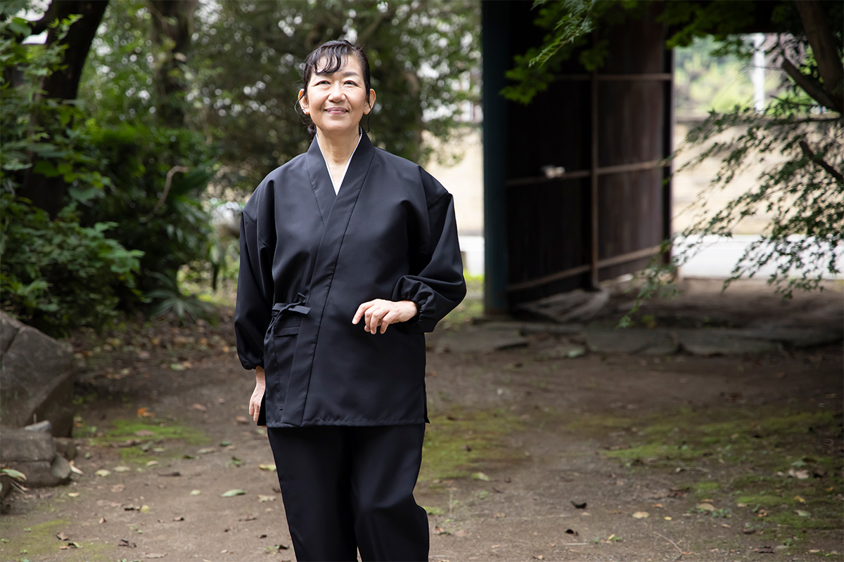 寺院様のご要望により、ズボンの渡り巾の広いゆったりとした作務衣を製作いたしました。