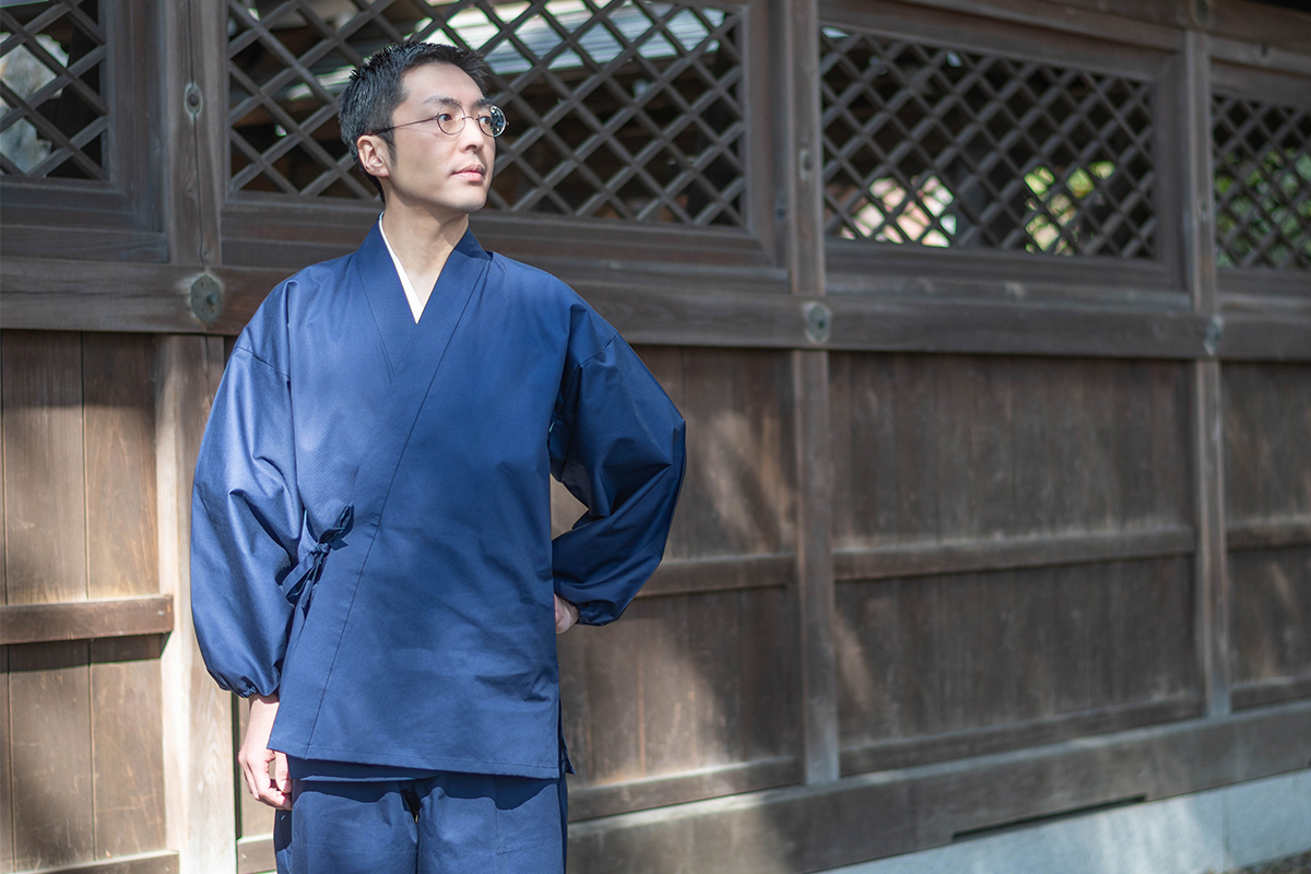 寺院様のご要望により、ズボンの渡り巾の広いゆったりとした作務衣を製作いたしました。