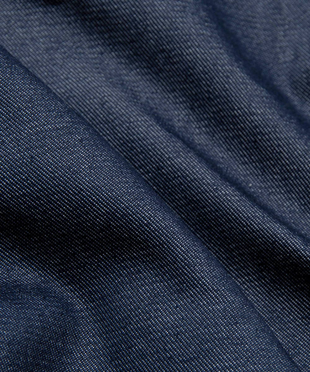 肌にやさしい綿と、お手入れしやすいポリエステルが混紡されたデニム生地を使用。 シワになりにくく、機能性のある素材です。