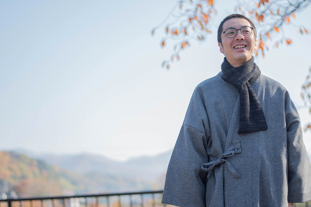 作務衣と同じ四つ紐仕様。ゆったりと着用いただけます。