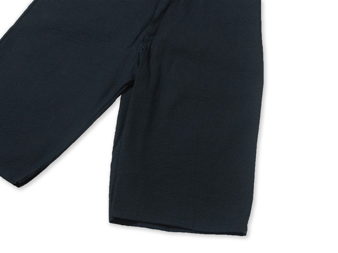 2種類の異なる織物の組織を用いて織り、その伸縮性の違いによって「しぼ」と呼ばれる凹凸を作った織物です。 「しぼ」があることで肌に触れる面積を少なく、風通しよい着心地にしています。