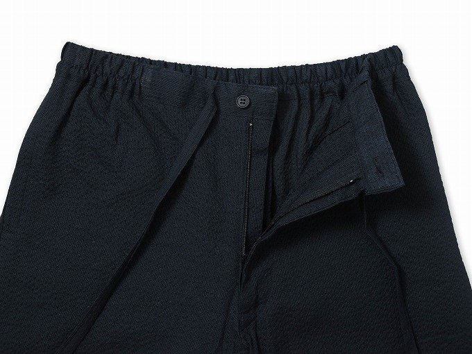 前側が紐、後ろ側がゴム仕様。ファスナーとボタン付きでゆったりと着用可能。