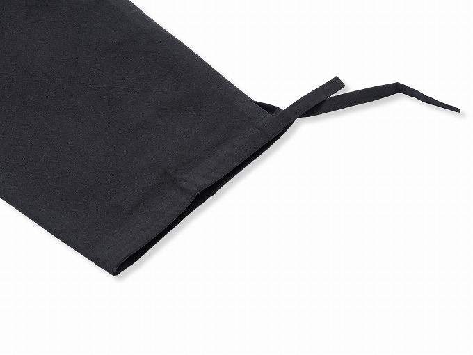 共布の紐を使用。お好みの加減で調節可能。紐を抜けば、ストレートにも。