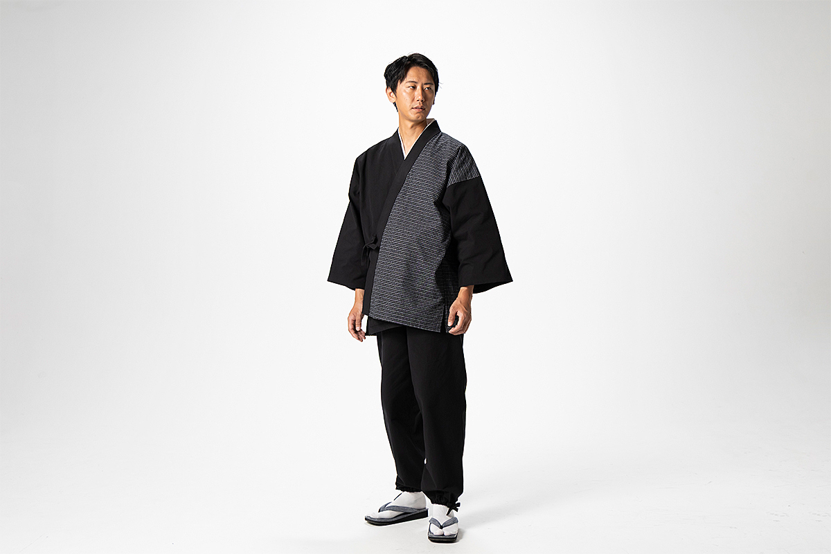 控えめでありながら粋な佇まい、そしてモダンな感性。和の美意識を現代に映す一着です。