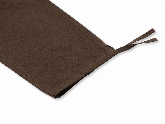 共布の紐を使用。お好みの加減で調節可能。紐を抜けば、ストレートにも。