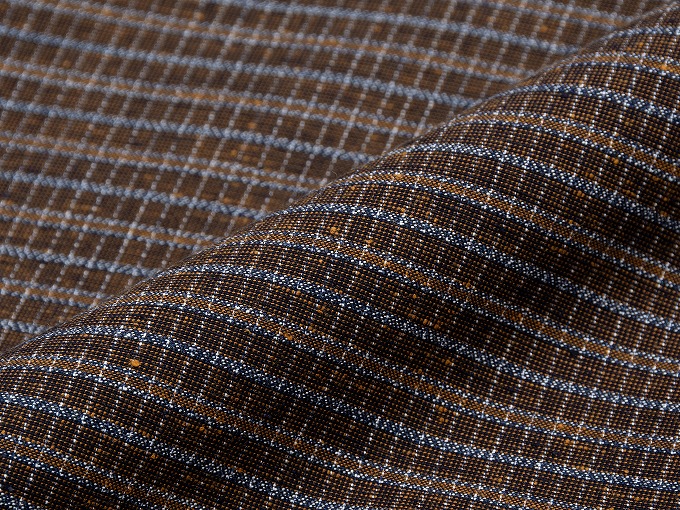 半身に織り込まれた杢糸(もくいと)は、2色以上の単糸を撚り合わせて生まれる奥深い色合い。
