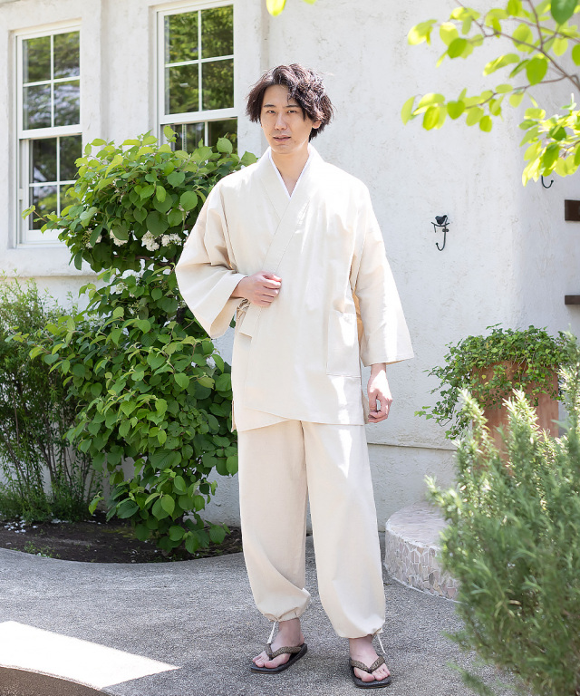麻50%・綿50%混紡の薄手のものを使った、春夏向きの作務衣です。