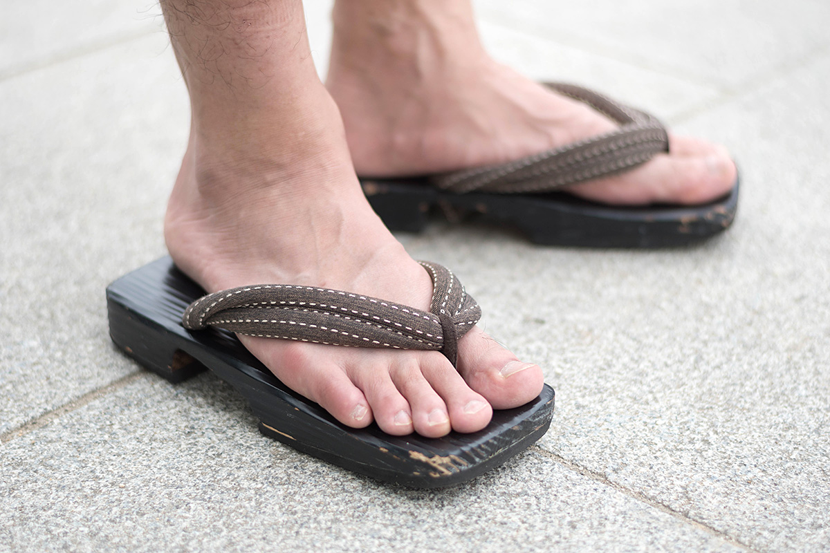 黒の下駄は渋くて作務衣スタイルにぴったりです。
