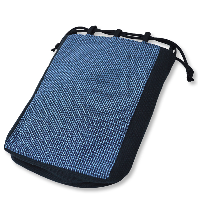 表面と側面のマチにそれぞれ異なる生地を使用して仕立てた信玄袋です。 表面には大柄ドビー刺子織の生地を使用。無骨でかっこいい印象を与えてくれます。 側面には小柄ドビーの黒の生地を左右に使用しています。 底面にも刺子織の生地を使用。シックに感じる黒色です。 中は便利な二重ポケット付き。財布やスマートフォンも楽々入ります。