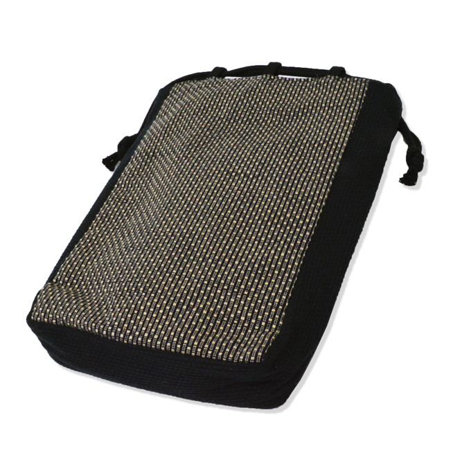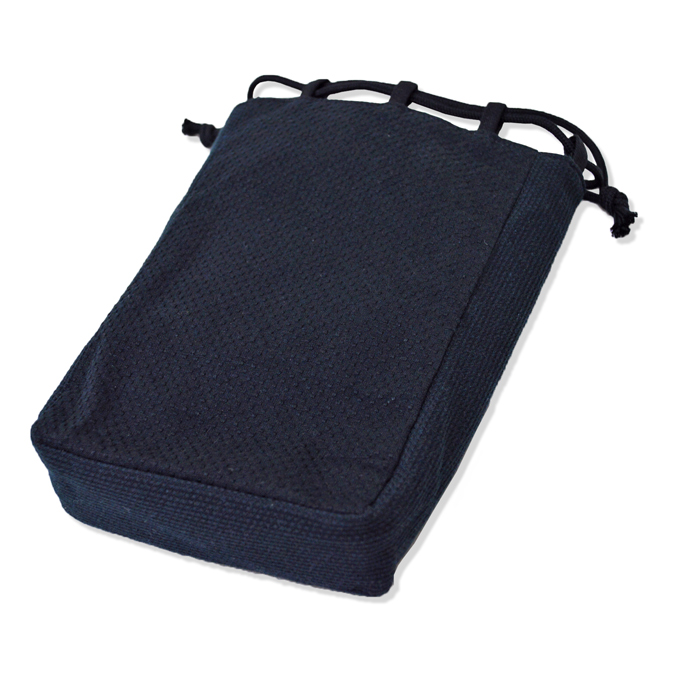 表面と側面のマチにそれぞれ異なる生地を使用して仕立てた信玄袋です。 表面には大柄ドビー刺子織の生地を使用。無骨でかっこいい印象を与えてくれます。 側面には小柄ドビーの黒の生地を左右に使用しています。 底面にも刺子織の生地を使用。シックに感じる黒色です。 中は便利な二重ポケット付き。財布やスマートフォンも楽々入ります。