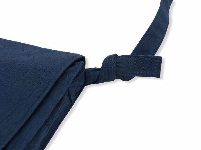 当店でも人気の高いたてスラブの作務衣の生地を使用したコンパクトな頭陀袋です。 前面のカバーをあければ収納まですぐ取り出せます。 紐の長さはお好みの加減で調整可能。短く結べばハンドバッグとしても使用できます。 ファスナー付きの取り出し口です。スマートフォンや財布などすっきりと収納ができます。