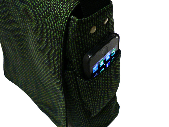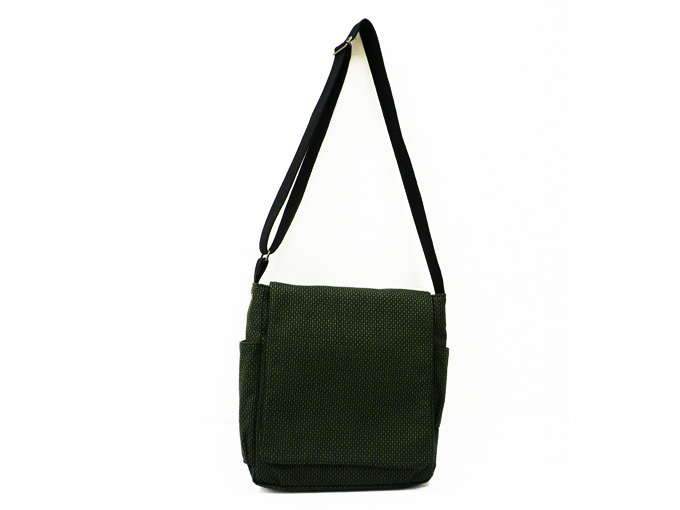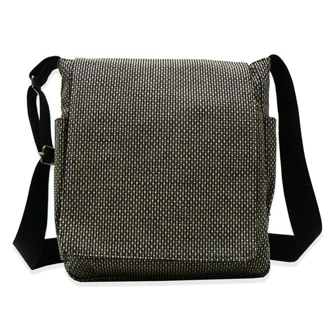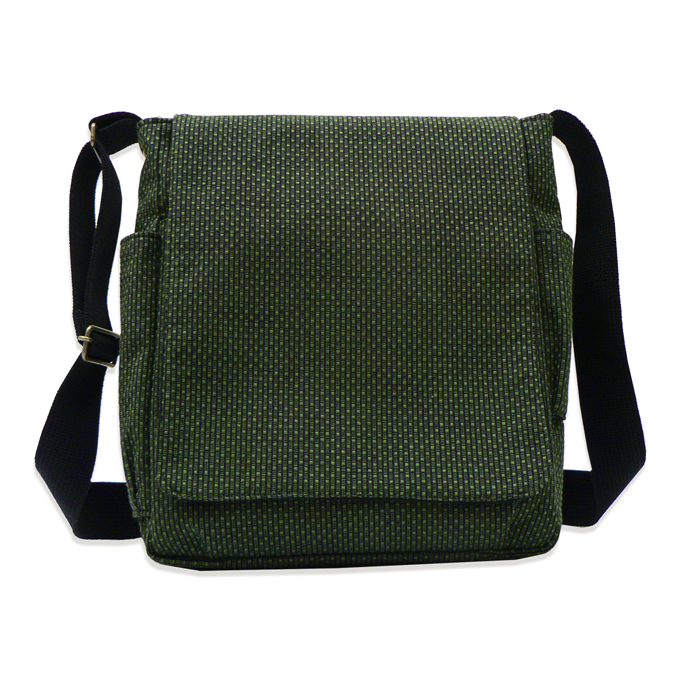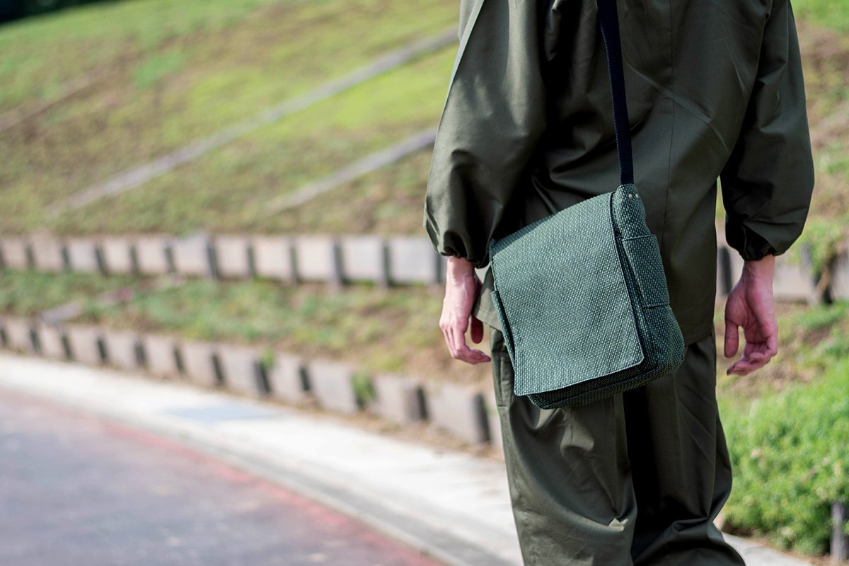 ドビー織機を用いて織った軽く丈夫な生地を、バッグに仕立て上げました。 適度な収納力をはっきりし、小型タブレットも収納が可能です。 サイドには大きさの違うポケットがついており、小物をいれるのに大変便利です。 取り出し口には使い勝手のよいマグネットボタンがついています。 紐の長さは好みの長さで調節ができます。