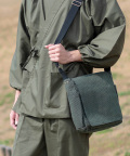肌馴染みの良い深い紺色。 苦みのある通好みのグレー。 渋くて味のある金茶色。 思わず目を引く緑色。 高級感漂うシックな黒色。 縦27cm×横25cm×幅8cm 幅4cm×長さ約70cm〜138cm(長さの調整可能) 綿100% サイドポケット左右各1・前面ポケット1・内ポケット1 マグネットボタン・アンチック金具 約350g 日本 一枚の布に、職人の想いを宿す。