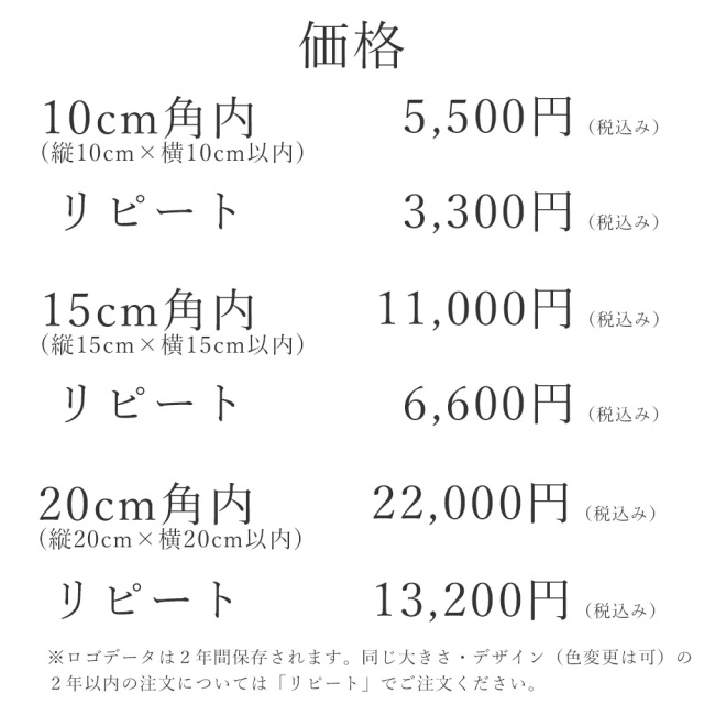 | ロゴ・マーク イラストなど | 10cm角内 | ¥5,500(税込) | ![]() |
