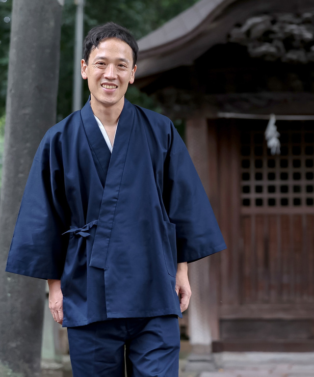 和粋庵の定番の作務衣で、日常着やちょっとしたお出かけ着などして幅広くご活用いただけます。