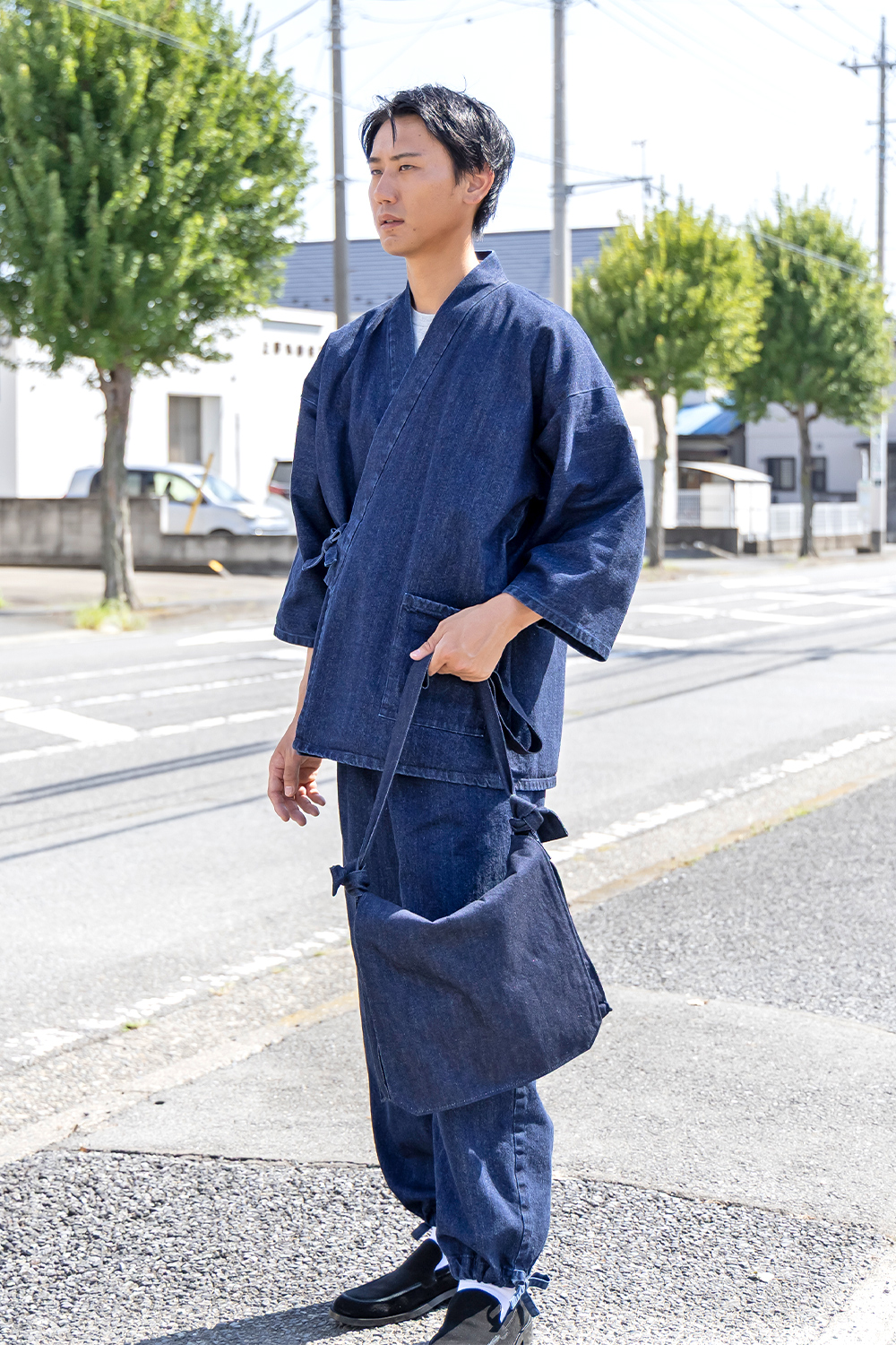 - デニム・ロールアップ作務衣
