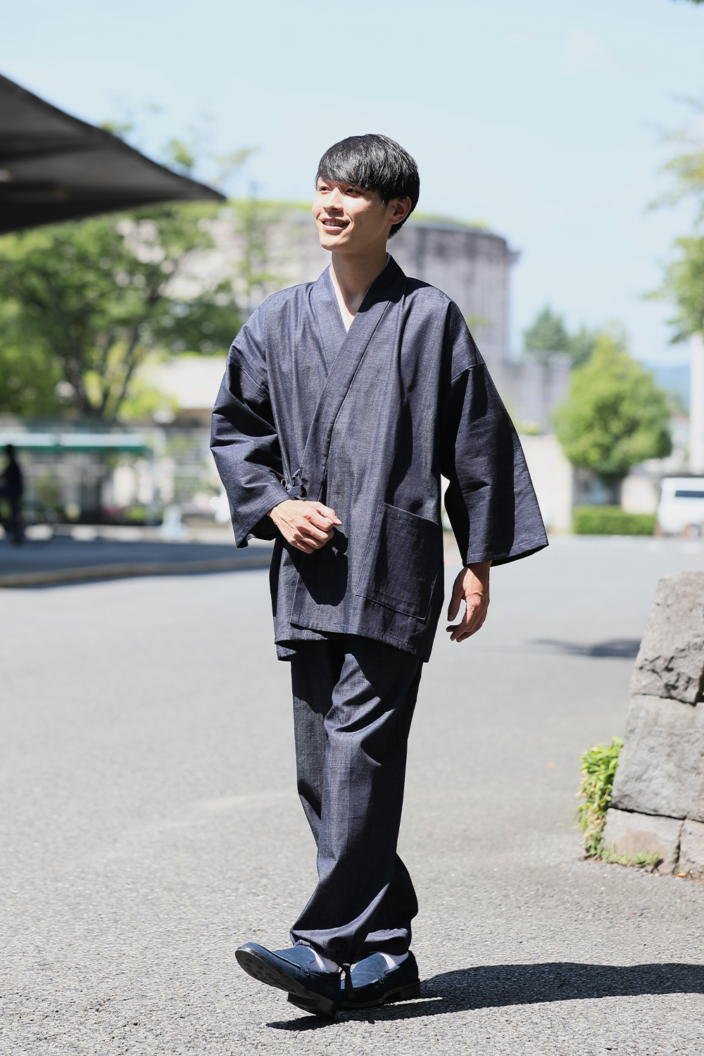 落ち着いたデニムの作務衣。