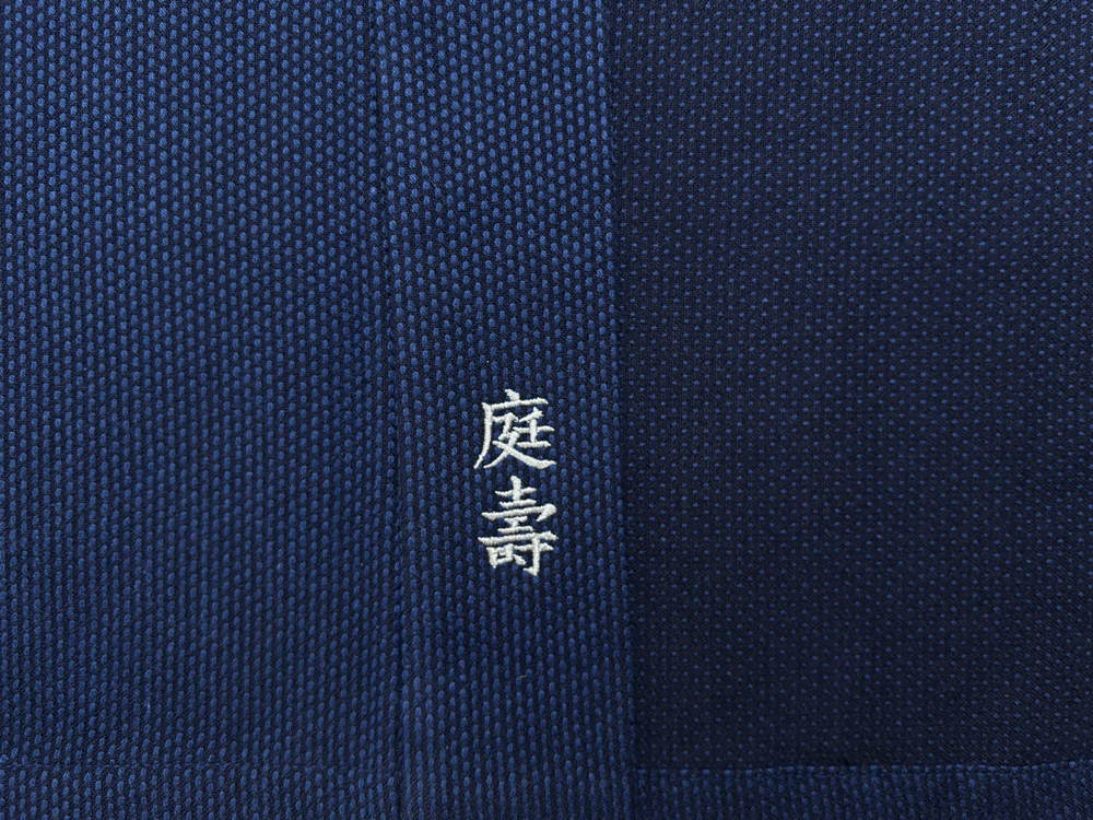簡単文字刺繍の【右衿裾】は、作務衣や甚平の場合は着用時に「隠れる位置」ですが、ジャケットの場合は「見える位置」になります。