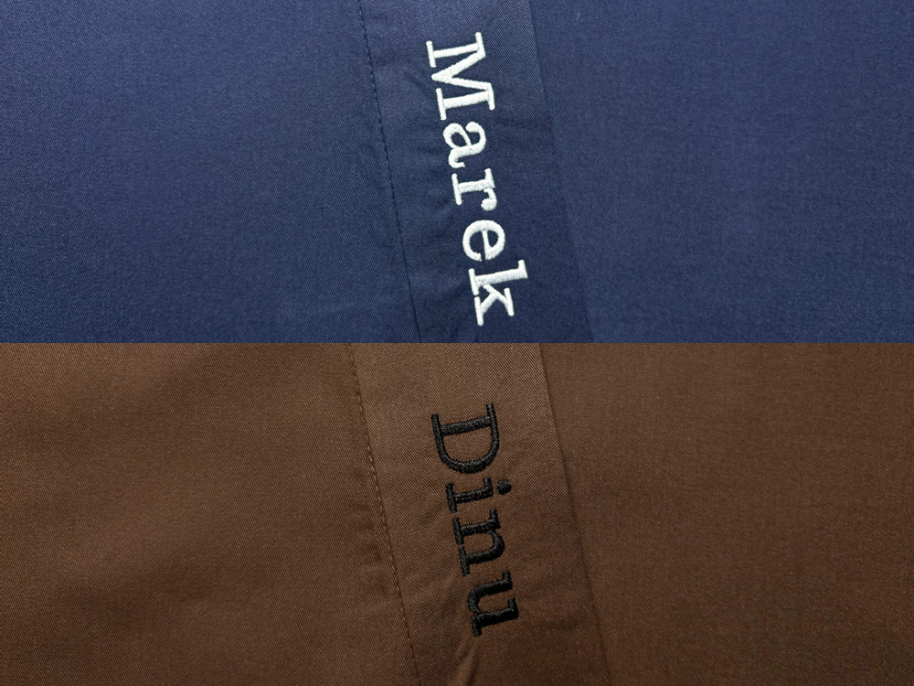暗めのベースカラーに対して、白の糸が鮮やかなコントラストを描き、お名前を美しく際立たせます。