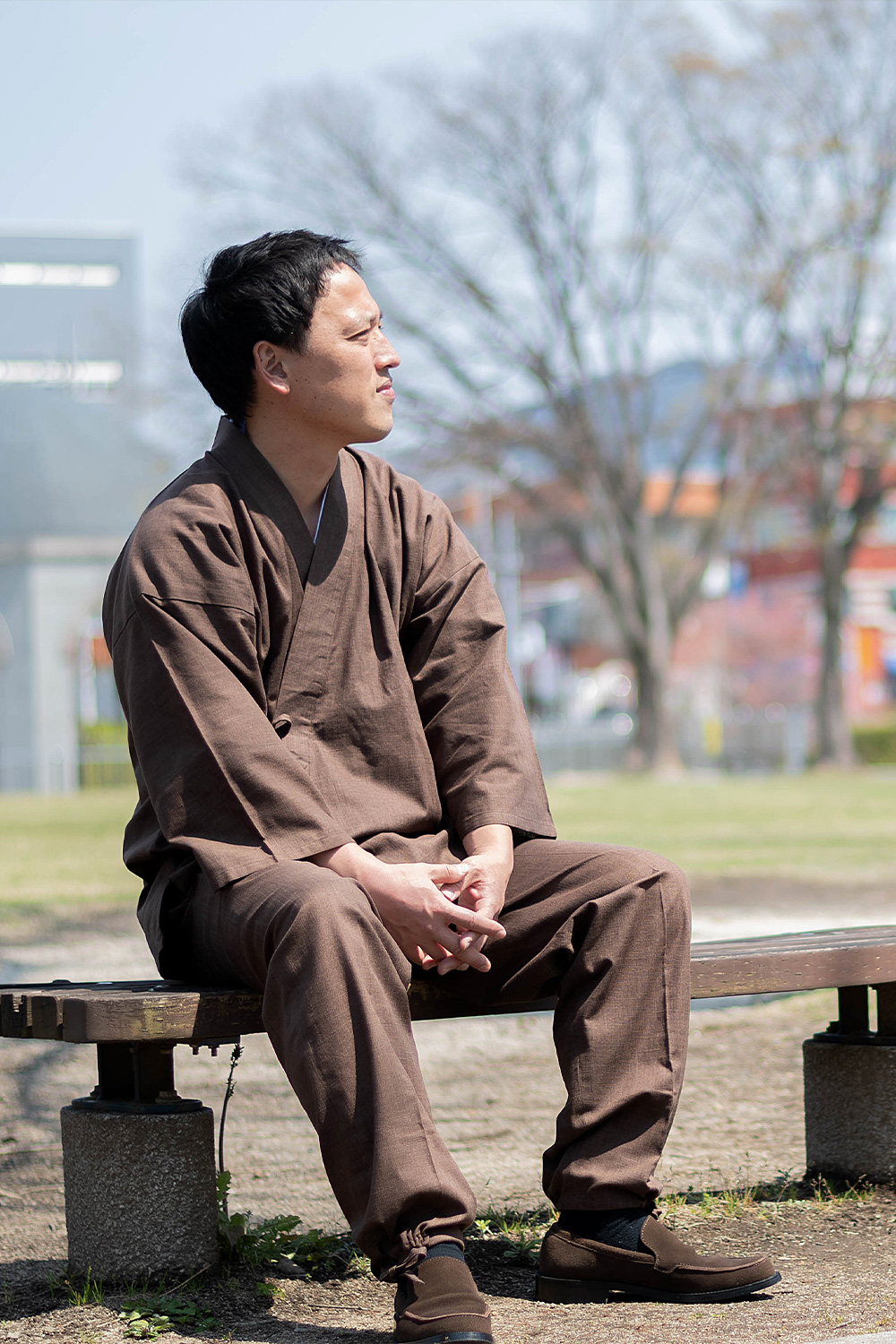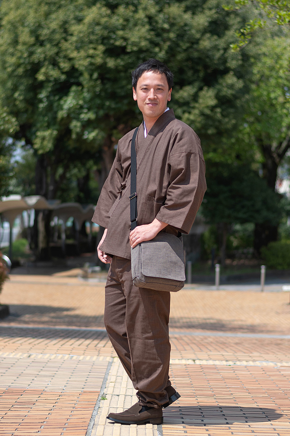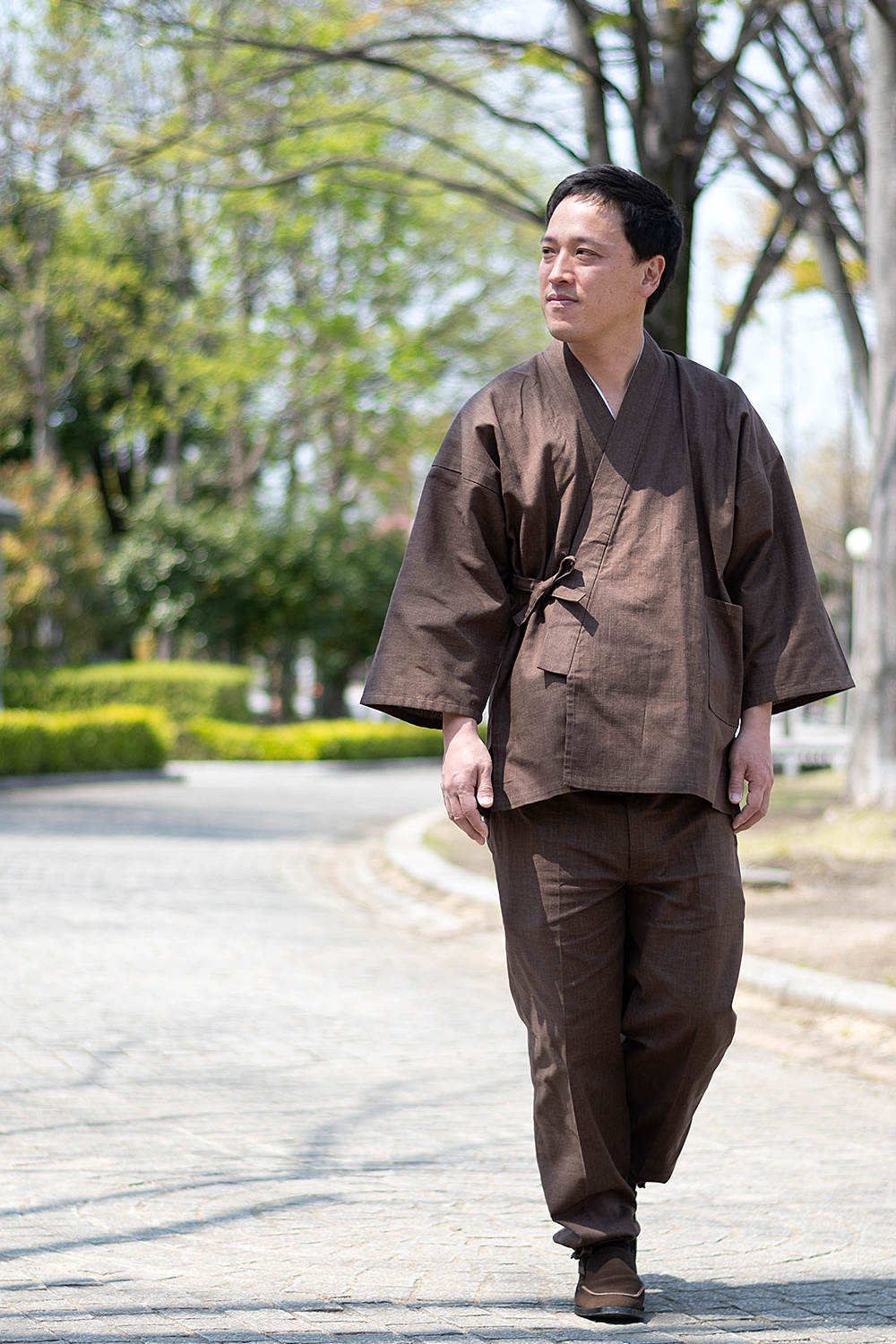 6001 絣紬作務衣 No.3 濃茶