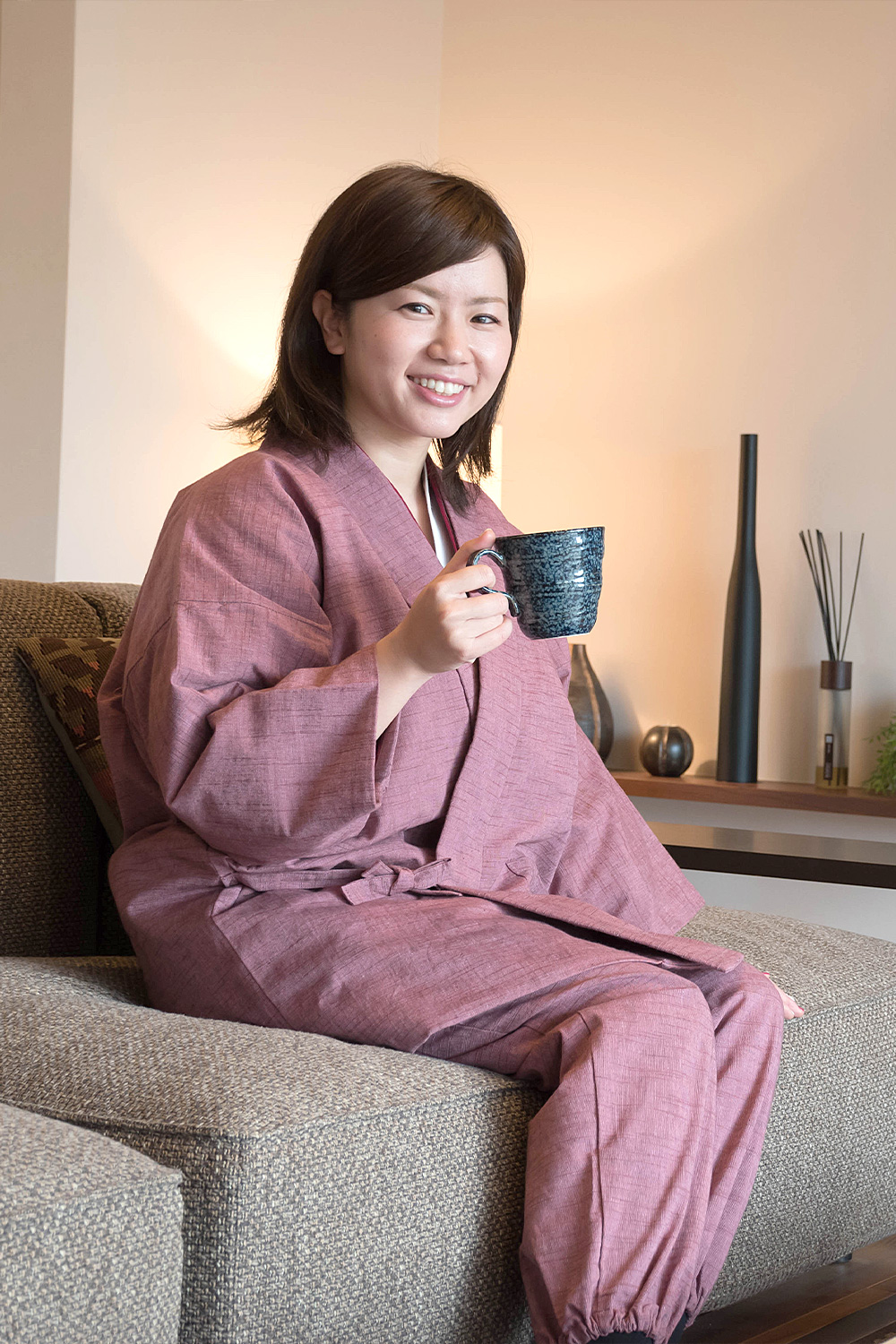 2030 女性紬織作務衣式綿入袢天 No.1 ピンク