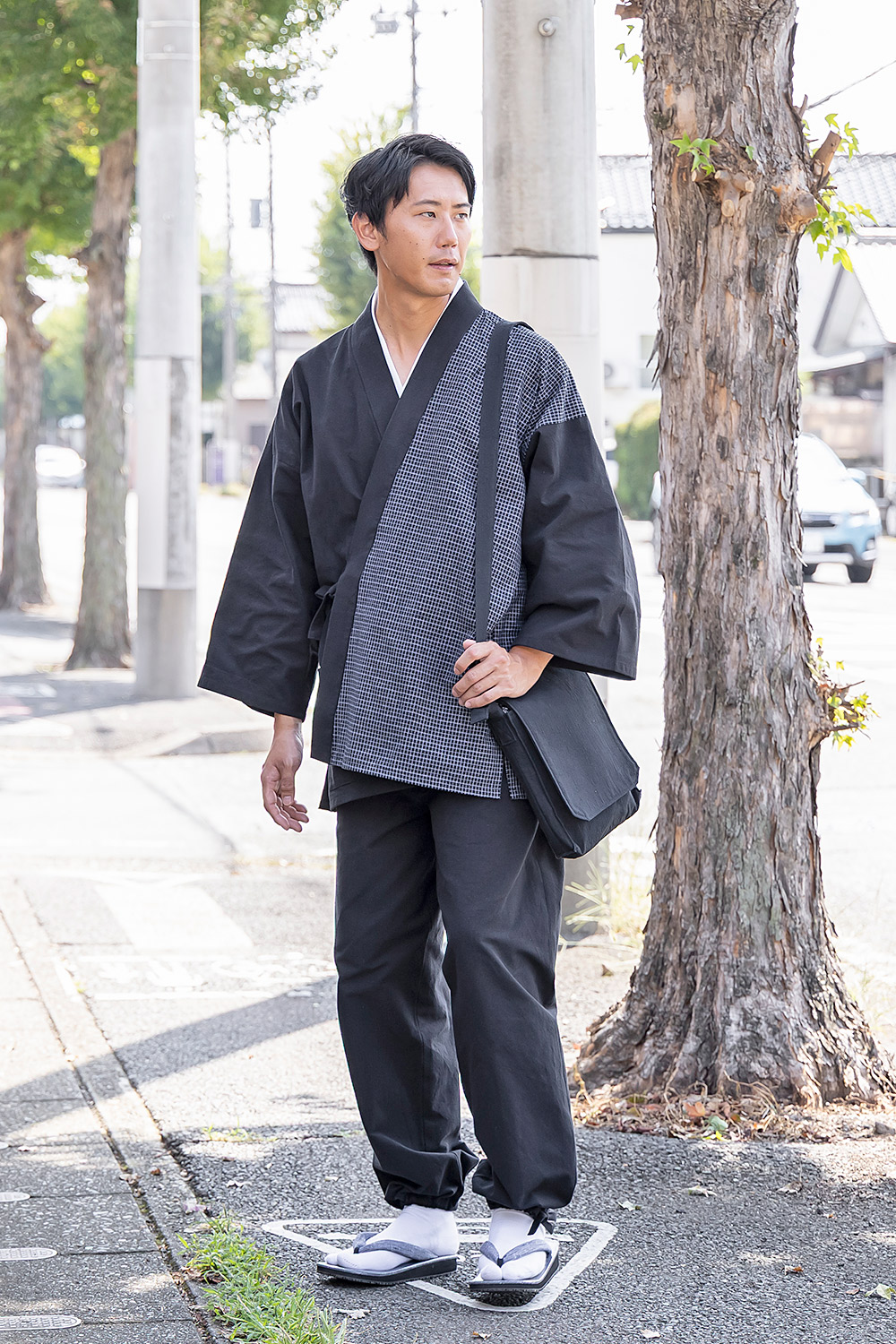 8026 杢糸織デザイン作務衣 No.2 黒